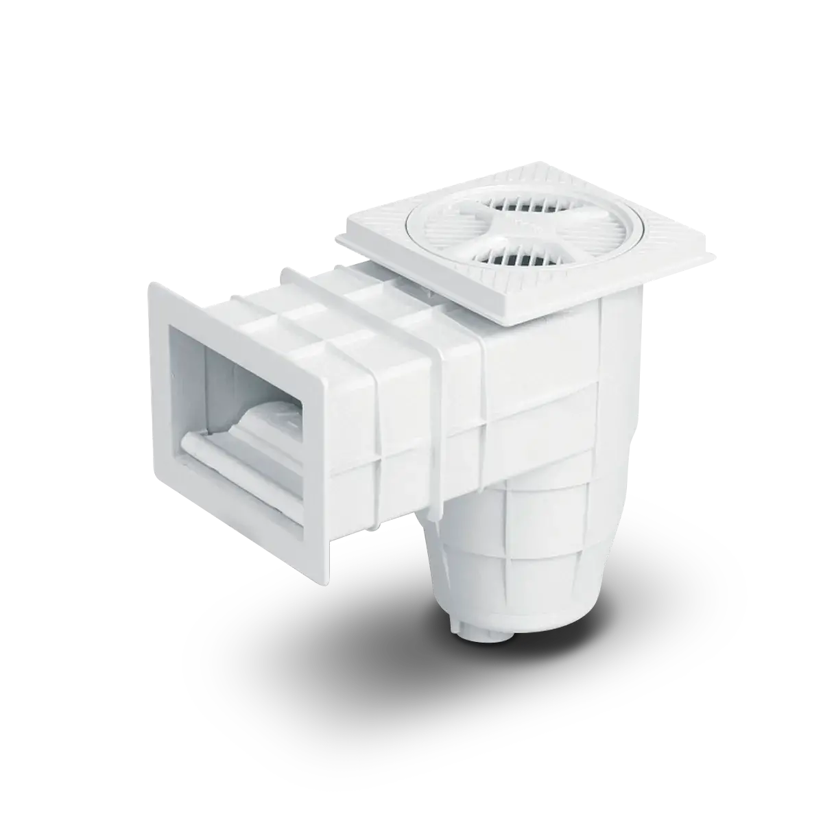 Toma superficial de agua Vulcano para piscinas de hormigón con boca de 20 cm de ancho y cuello de 265 cm de largo. Su función es eliminar las impurezas flotantes en la piscina como hojas, papeles, cabellos, insectos, aceites bronceadores, residuos varios, etc.