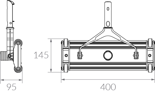 Se utiliza conectado a la manguera flotante mediante el acople de aspiración y a un mango fijo o telescópico.